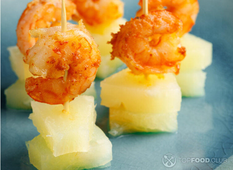 Канапе с тигровой креветкой и ананасом