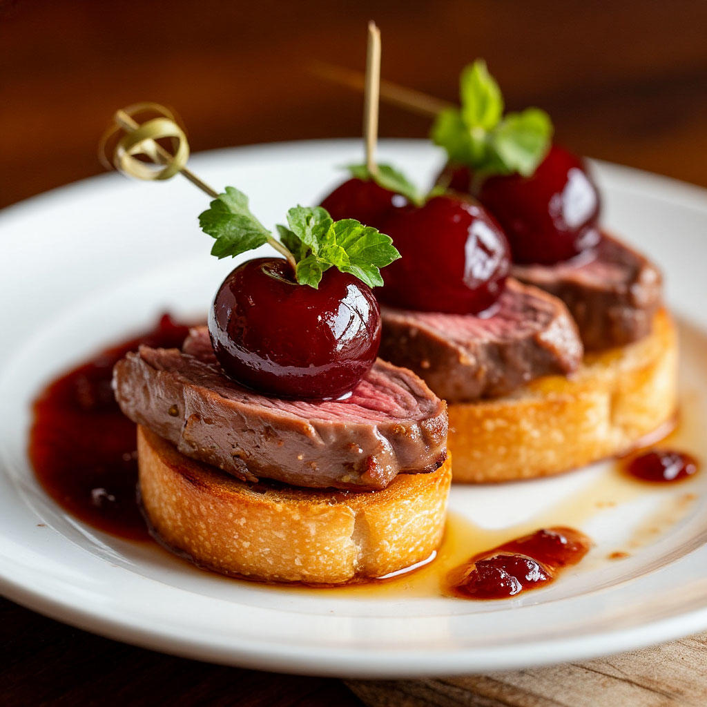 Канапе с утиной грудкой и маринованной сливой
